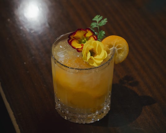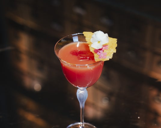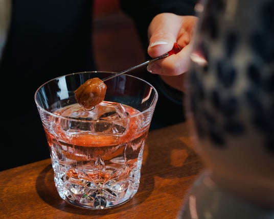 ウイスキーカクテルのマンハッタンが好きと語る森田さん。今回創作いただいたのは、まさにそのマンハッタンと、同じく人気ウイスキーカクテルであるオールドファッションドを組み合わせたようなカクテル。「大阪では万博の開催が控えていますが、4月から開催ということもあり、季節の花である桜を使用しました。日本の国花である桜の花言葉は“優美な女性”。まさに今回の企画にふさわしいと感じました」と森田さん。