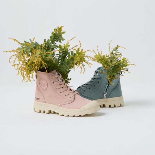 パラディウムは、耐久性や堅牢さに優れたアイテムが、ミリタリールーツと相まって、男らしさと共に語られることがありますが、雨の日もアクティブに活動できる防水ブーツや軽量でカラフルなキャンバススニーカーなど、女性の足元を彩るアイテムも多数ラインナップ。すべての女性たちがあえて踏み出す一歩を支えます。