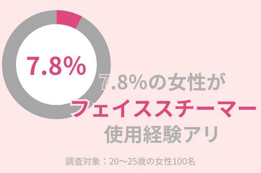 調査の結果、7.8%の20~25歳女性がフェイススチーマーを使用したことがあるとわかりました。スチーマーは必ずしも使用しなければならないわけではありません。むしろ肌トラブルを悪化させる可能性もあるため、敏感肌やニキビ肌の方には推奨しておりません。