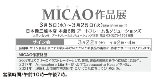 #MICAO #刺繍アーティスト #イラストレーター #株式会社アートプリントジャパン #日本橋三越