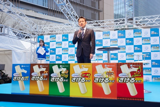 本イベントの最初には、雪印メグミルク株式会社乳食品事業部長の加藤光一郎が登壇し、今回の大阪開催について『「さけるチーズ」は近畿圏でかなり売上が伸びているため、今回感謝の気持ちを込めて大阪で初開催しました。』と語りました。