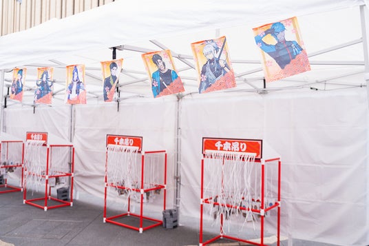 射的、千本吊り、おみくじの3つの縁日企画では、多くのお客様にご参加いただき、会場は大勢のお客様で溢れかえっていました!縁日の参加者にはオノ・タコ氏による描き下ろしイラストを使用したポストカード(全10種)が配られました。
