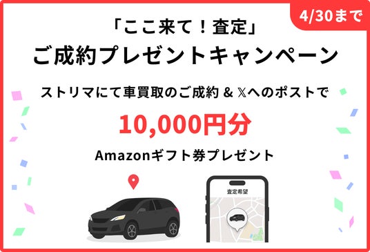 ストリマにて車を売却された方に、Amazonギフト券1万円分のプレゼントキャンペーンを開催中です。