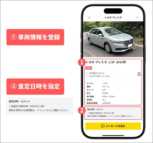 エレウノ株式会社(東京都目黒区 代表取締役: 大橋賢治)は、中古車売買プラットフォーム「ストリマ」において、新しい車買取・一括査定サービス「ここ来て!査定」の提供を開始しました。