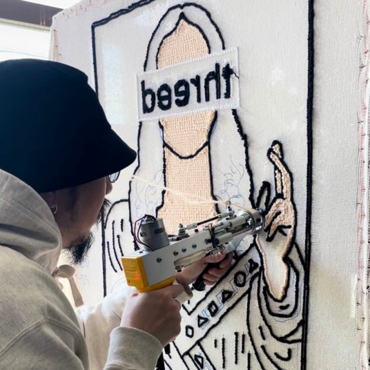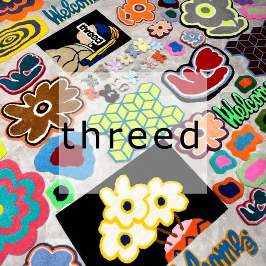 threedの作品は【実用的】【空間を彩る】【洗練されたデザイン】この3つを軸にタフティングという技法を用いて表現しています。ラグもファッションの一部として捉えたモノ作りをしております。