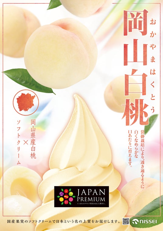 ソフトクリームの総合メーカー、日世株式会社(本社:大阪府茨木市 社長:吉田文治(ふみはる))は、ジャパンプレミアム(JP)シリーズから、「JP岡山白桃ソフトミックス」を発売します。