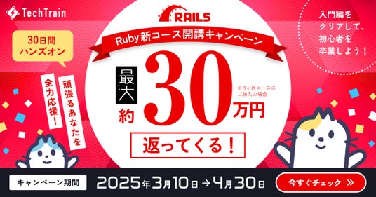 TechTrain、新コース「フロントエンドエンジニア React × Rails コース」リリース記念!最大30万円キャッシュバックキャンペーン実施