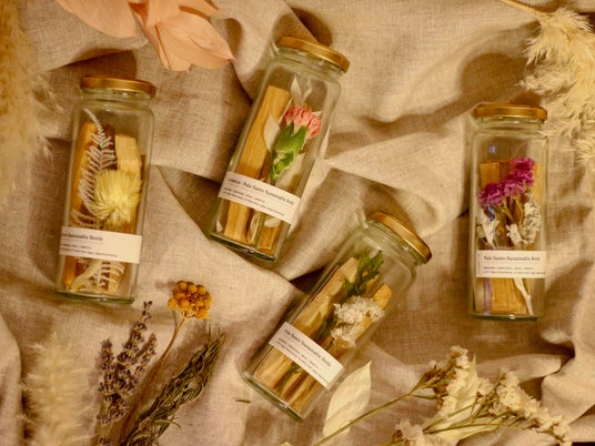 ポジティブエネルギーを呼ぶという浄化香パロサントと再び命を吹き返した花々のコラボレーションセット。