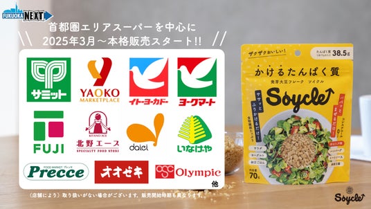 株式会社上向き(本社:福岡県福岡市、代表取締役:白坂 大作)は、当社製品である「Soycle(ソイクル)発芽大豆フレーク」(以下「ソイクル」)を、2025年3月より首都圏エリアのスーパーを中心に、順次販売を開始いたします。これにより、これまで通販でのみご購入いただいていたお客様にも、より身近な店舗でお求めいただけるようになりました。
