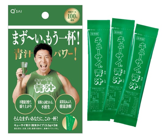 キューサイ株式会社(本社:福岡市中央区、代表取締役社長:石川 順朗)は、2024年10月10日に販売開始した復刻版パッケージ商品「キューサイ青汁(粉末タイプ)」の3本セットを2025年3月10日(月)より新発売することをお知らせいたします。イメージキャラクターのなかやまきんに君が目を引くパッケージで、「健康診断の結果を見てみぬふり…」「家族に不摂生を心配される…」「不健康自慢が止まらない…」そんな“まず~い”あなたへ青汁パワーをお届けいたします。