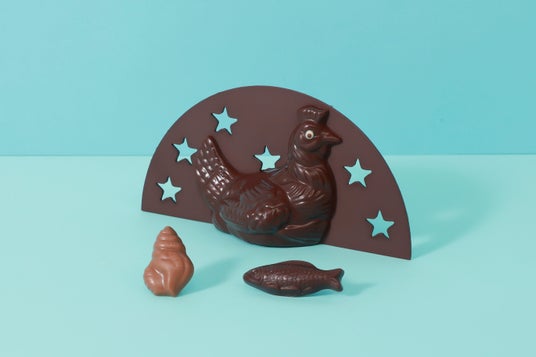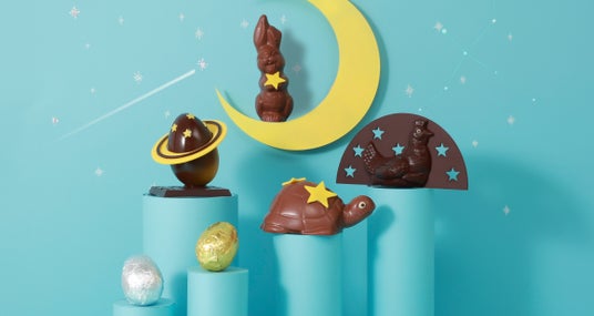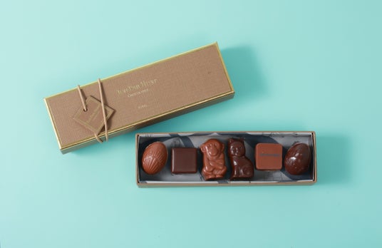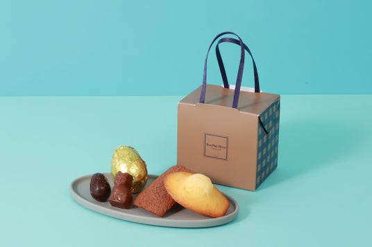 イースターの卵を探す動物をかたどった「アニモ」と、卵形の「ウフ」、「ペルル クラッカントゥ ショコラ メランジュ」の詰合せ。