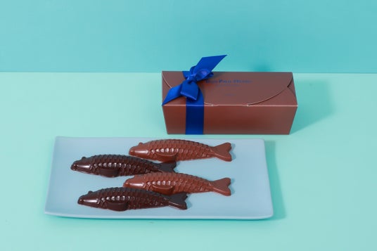 イワシをかたどった2種類(ビターチョコレート/ミルクチョコレート)の「サルディーヌ」4個の詰合せ。