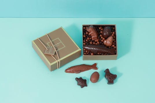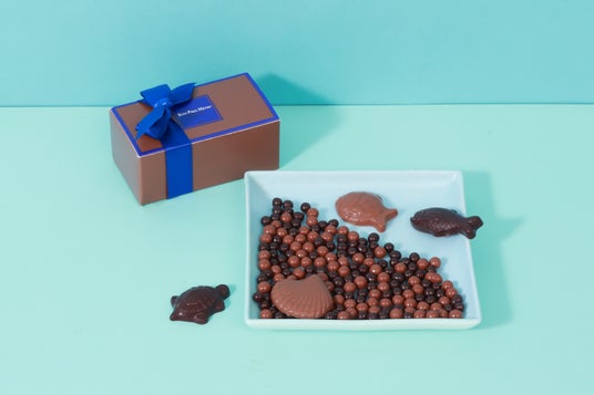 魚や貝など、海の生き物をかたどったキャラメル風味のミルクチョコレート。