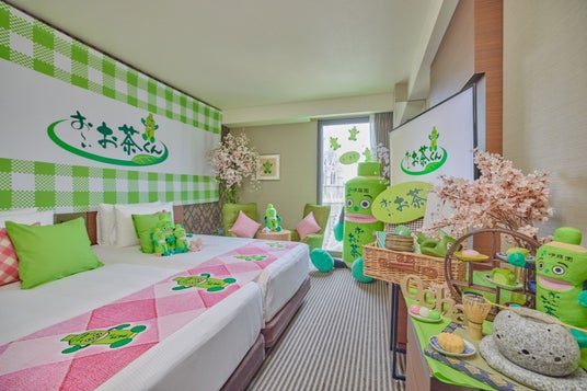 世界初!伊藤園「お~いお茶」とのコラボレーションルームが期間限定登場!「お~いお茶くん」に“ほっと”癒される、春の非日常ステイ『「お~いお茶くん」デコレーションルーム』販売開始