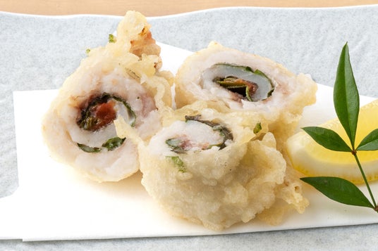 また、しっかりとした旨味を持つカマスは、板前がひと手間も二手間も加え、お酒に合う粋な料理に昇華させます。その名も「江戸っ子 カマス大葉巻き揚(620円)」。ふっくらとした身を大葉・梅肉と一緒に巻き、天ぷらに仕立てます。爽やかな風味とサクッと軽やかな食感が楽しめます。
