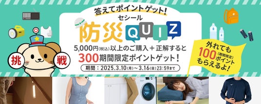 株式会社セシール(本社:東京都新宿区)は、2025年3月10日~3月16日に防災意識を高めていただく機会として、セシールでも取り扱いのある防災商品にまつわるクイズを実施します。