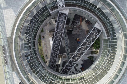 梅田スカイビルは、2棟のビルを屋上を含む上層部「空中庭園」で繋げる独特のフォルムをした世界初の連結超高層建築。