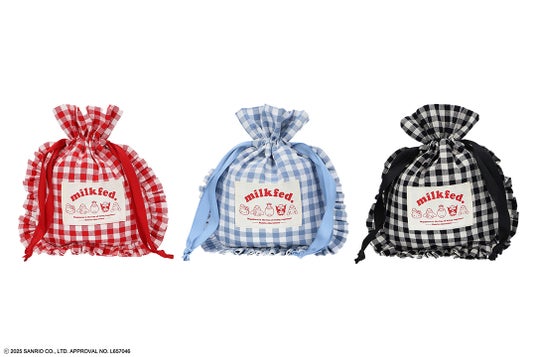 MILKFED. x SANRIO CHARACTERS DRAWSTRING POUCHRED,LtBLUE,BLACK