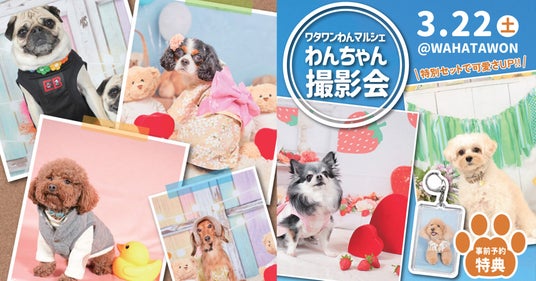 WHATAWON(大阪府岸和田市)では、2025年3月22日(土)に「わんちゃん撮影会」を開催します。小型犬から大型犬まで、すべてのわんちゃんが参加可能!プロカメラマンによる本格的な撮影で、最高の一枚を残せます。事前予約特典として、撮影した写真を使用した「うちのコキーホルダー」をプレゼント!さらに、撮影データを活用したフォトグッズの販売も行います。