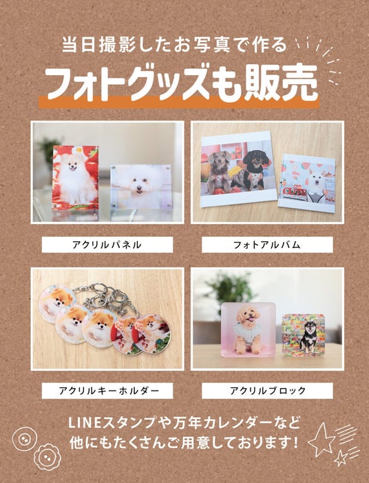 フォトグッズも販売!当日は撮影に参加されたわんちゃんのお写真をカレンダーやアルバムなどにしたグッズも販売いたします。