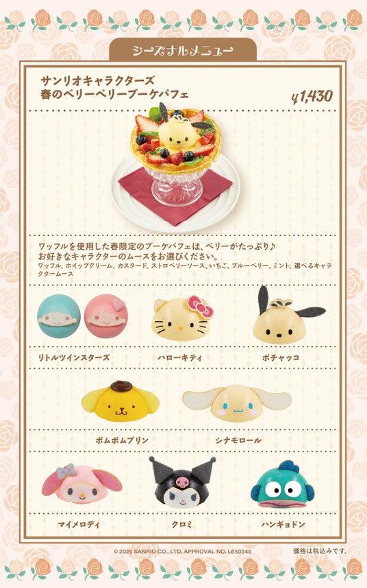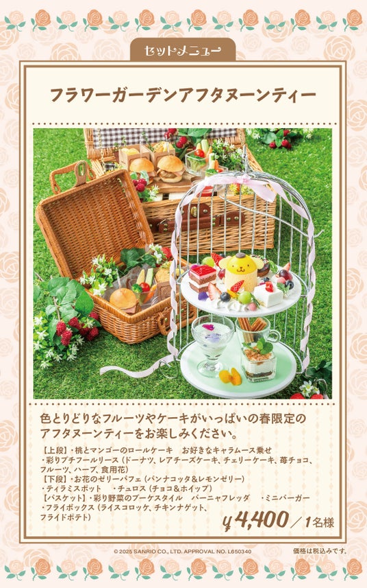 東京上野のサンリオキャラクターズ ガーデンカフェでは、2025年3月4日より春季限定メニューの提供を開始いたします。5月末頃までの期間限定です。
