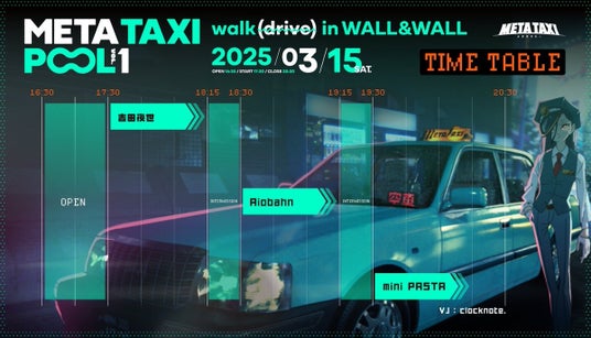 夜のタクシーに乗り合わせた二人がアバター姿でトークを繰り広げるYouTubeチャンネル「META TAXI」初となる音楽イベントが、3月15日(土)に表参道・WALL&WALLにて開催決定。