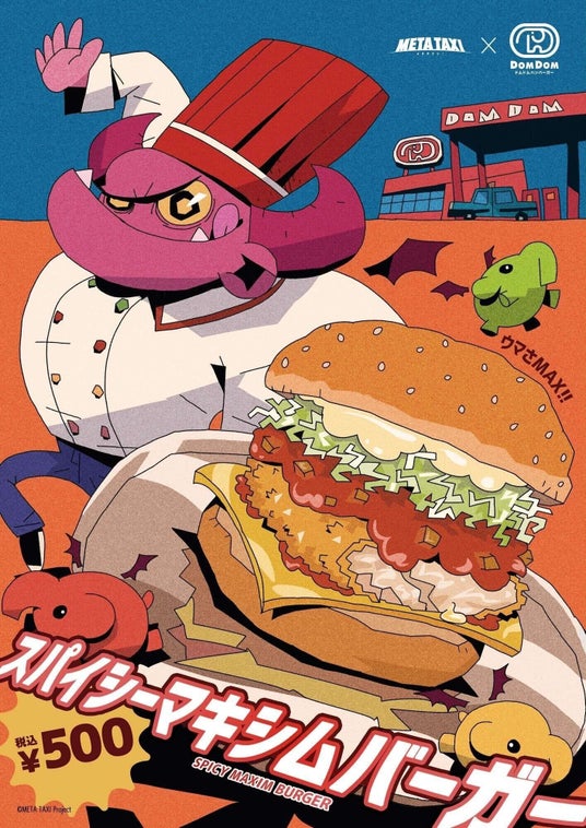 META TAXIのアバターキャラクターとドムドムハンバーガーによるコラボバーガーの販売が決定。