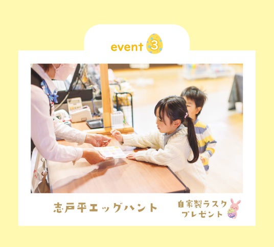 小さなお子様でもできる毎年人気のイベント。イースターラビットが隠した卵を探すゲームです。館内にいる特定のスタッフが卵のシールを持っています。全てのシールをゲットしたお子様には、自家製のシュガーラスクをプレゼントいたします☆