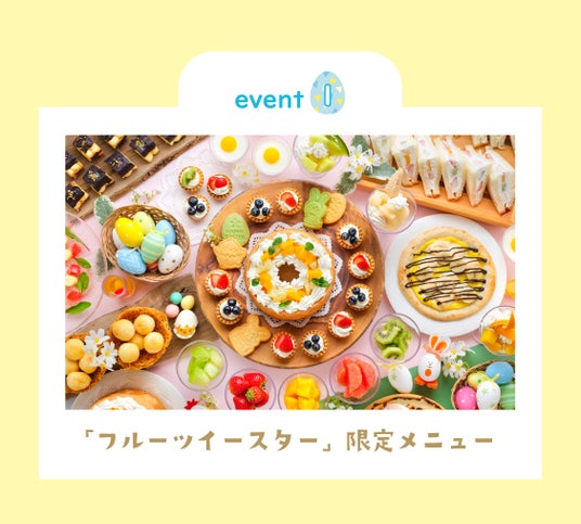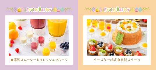館内や食事会場を、かわいいうさぎやたまごで装飾するイースターイベントは、今年より「フルーツ」をテーマに開催します。食事会場ではフルーツを使った料理が並びます。また、期間でフルーツが変わるメニューもご用意しております。また、期間限定の宿泊プランもご用意しております。