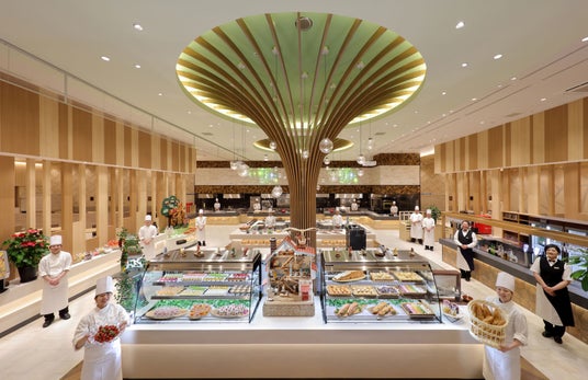 【Live×Buffet ヒカリノモリ】「心がおどる、食のエンターテインメント。新感覚のビュッフェレストラン」をコンセプトに営業する、湯の杜ホテル志戸平の食事会場です。ほぼ全てのお料理が、オープンキッチンを介して提供され、出来立ての贅沢を味わえます。また、営業中に突如として始まる鮮魚の解体ショーや、料理人自慢の一品「スペシャリテ」料理の限定提供等、何が起こるか分からないドキドキワクワクが魅力なレストランです。ご用意するお料理は夕食約100種、朝食60種以上!ぜひお気に入りの一品を見つけて頂きたいと思います
