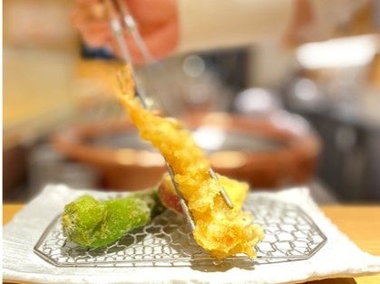 【こだわり1. 揚げたて都度出しスタイルでご提供】注文を受けてから天ぷらを揚げ、一番おいしい揚げたての状態でご提供します。だから「まきの」の天ぷらは薄衣のサクサク食感で熱々。お食事の進み具合をみながら、一品一品に対し丁重な天ぷら職人たちの技術で、最高においしい天ぷらを最適なタイミングで、リーズナブルにご提供します。