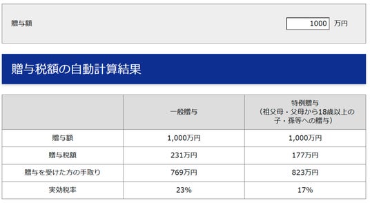 贈与税の算出ならば「贈与税の自動計算シミュレーション」ツール