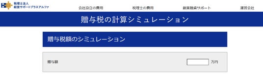 起業家のチャレンジを総合的に支援する株式会社経営サポートプラスアルファホールディングス(所在地:東京都豊島区)および税理士法人経営サポートプラスアルファ(同左)は、贈与額から贈与税を算出できる「贈与税の計算シミュレーション」ツールを提供しています。