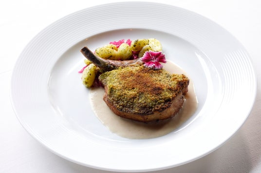 骨付きポークチョップを使用した食べ応えのあるボリューム感が特徴の一皿。ディジョンマスタードの上品な香りと、ローズマリー、タイム、バジルなどの香草を加えたパン粉をまぶし、オーブンでじっくりと焼き上げました。香草の春らしい香りとともに、外はサクッと、中はジューシーな食感をお愉しみいただけます。豊かな風味とともに、春の訪れを感じるひとときをお過ごしください。