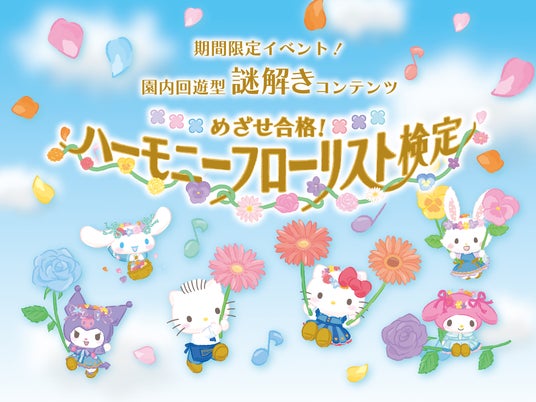 また期間限定で、園内各所に設置したハローキティたちからの「検定問題」を解いて合格を目指す回遊型謎解きコンテンツ『めざせ合格!ハーモニー フローリスト検定』(有料・数量限定)も実施します。合格した方にはミニアクリルスタンドキーホルダーをプレゼント。さらに「#ハーモニーランド謎解き」をつけてSNSに投稿するとオリジナルステッカーをお渡しします。