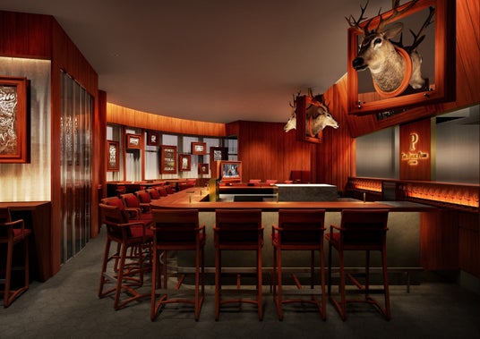店内は、オーセンティックな英国PUBを想起させる一方で、PUBLICブランドならではのウィットに富んだグラフィックアートが飾られ大阪らしいエネルギーを演出。鹿のはく製が飾られた店のシンボルとなるアイランドバーは、ゲスト同士のボーダーを無くし、心地よい一体感を生み出します。