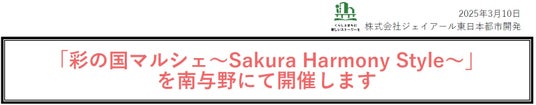 株式会社ジェイアール東日本都市開発は、2025年3月22日(土)、23日(日)に地域連携マルシェ「彩の国マルシェ~Sakura Harmony Style~」を開催します。