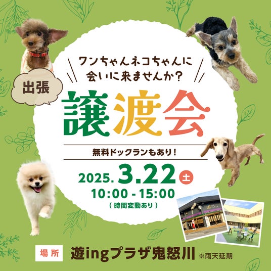 また3月22日には、栃木県日光市の複合商業施設「遊ingPLAZA鬼怒川」にて出張譲渡会も実施します。