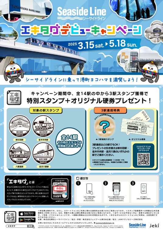 ◎株式会社ジェイアール東日本企画が提供する駅スタンプアプリ「エキタグ」では、2025年3月15日(土)より、横浜シーサイドラインにエキタグがデビューします。