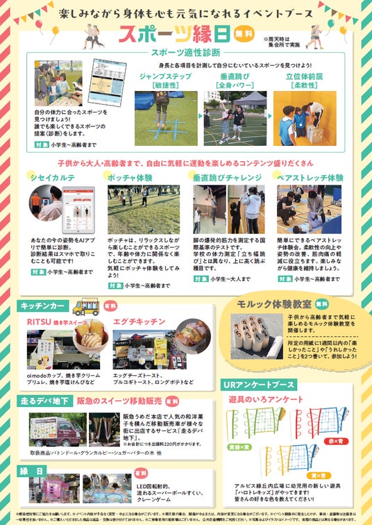 ▶内 容:1.スポーツ縁日2.URアルビス緑丘 新設「遊具」アンケート3.キッチンカー 等