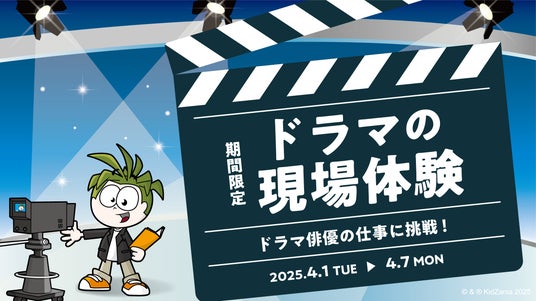 こどもの職業・社会体験施設「キッザニア」の企画・運営を行う KCJ GROUP 株式会社(本社:東京都中央区、代表取締役社長:圓谷 道成、以下 KCJ GROUP)は、株式会社TBSテレビ(本社:東京都港区、代表取締役社長:龍宝 正峰、以下 TBS)の協力のもと、2025年4月1日(火)から4月7日(月)まで、キッザニア東京(東京都江東区)にて期間限定「ドラマ制作スタジオ」パビリオン(以下 本パビリオン)をオープンします。本パビリオンでこども達は、4月から放送が開始されるテレビドラマ「キャスター」(テレビ局の報道番組を舞台にした内容)をモチーフにしたセットの中で、ドラマのワンシーンに出演するドラマ俳優の仕事が体験できます。