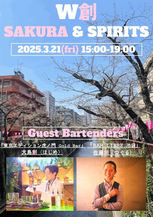 イベント初日にである3月21日(金)に、「東京エディション虎ノ門 Gold Bar」の大島創(はじめ)さんと「BAR LIBRE 池袋」の佐藤創(つくる)さんをお招きし、1日限りの"W創 SAKURA & SPIRITS "にてスペシャルお花見カクテルをご提供いたします。
