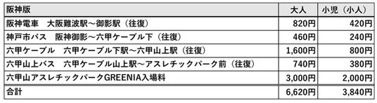 阪急版: 阪急全駅(神戸高速線を除く。)から阪急六甲駅までの往復乗車及び下記の共通区間