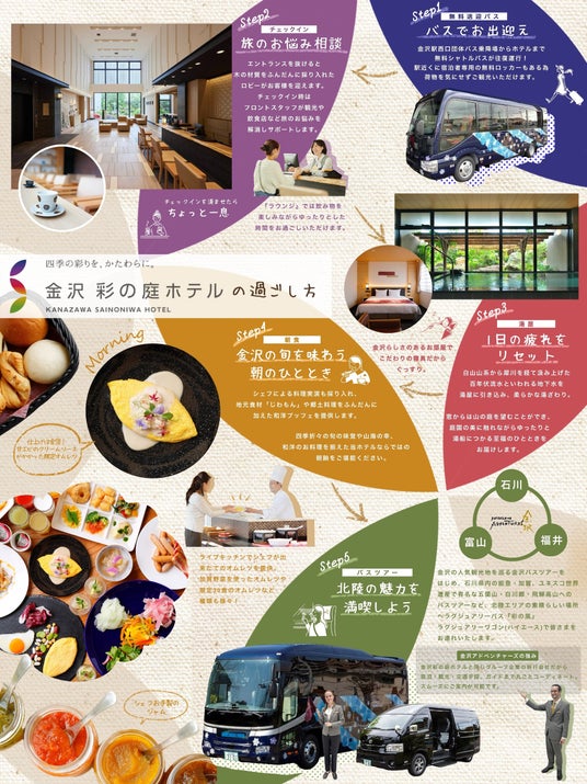 開業からの10年間を通して、私たちは皆様に常に金沢での時間をお楽しみいただけるよう努めて参りました。単に宿泊するための場所ではなく「魅力ある北陸を。」満喫していただくための拠点として、観光のプラットホームとしての役割を担うために観光事業とバス事業を新しく立ち上げ、取り組みを進めてきました。