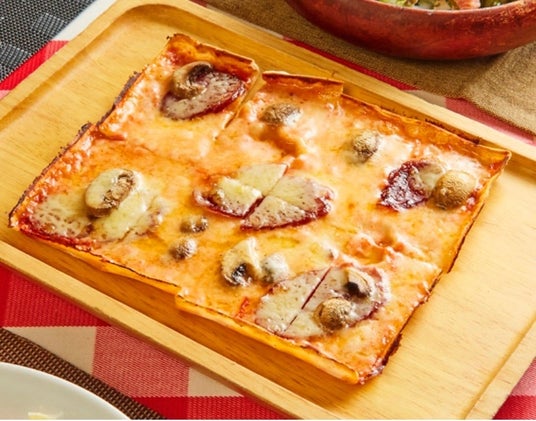 薄い生地はパリッと香ばしく焼き上げられ、チーズの豊かな風味が口いっぱいに広がります。片手でつまめる手軽さも魅力で、お酒のおつまみにもぴったり。定番のミックスピザは、サラミとマッシュルームがトッピングされていますが、他にもマルゲリータ、シーフード、ミート、アンチョビ、エビ、ガーリックなど、豊富な種類が楽しめます。