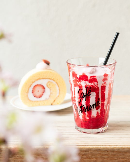 桜やいちご、抹茶を使った色鮮やかなメニューは見た目にも楽しく、春の訪れを感じられます。毎年この時期の定番ドリンク2種に加え、新しいケーキや店舗限定のメニューも登場します。新しい季節の始まりの時を、Cafe Kitsuneでお楽しみください。