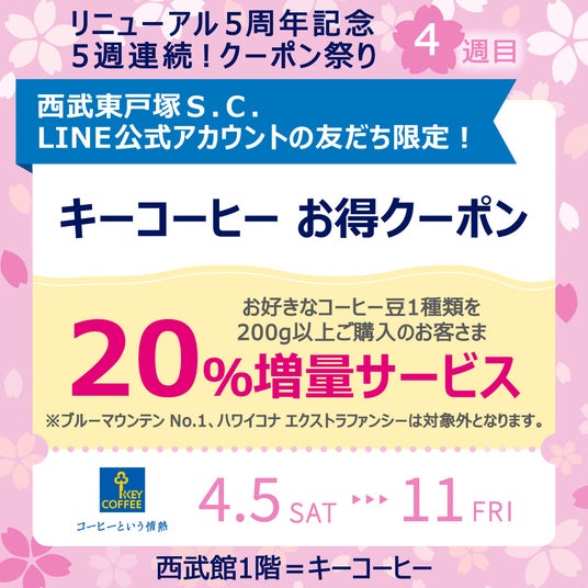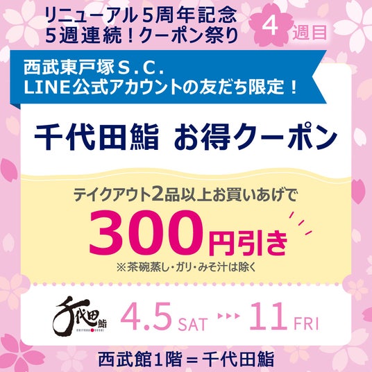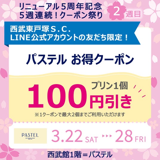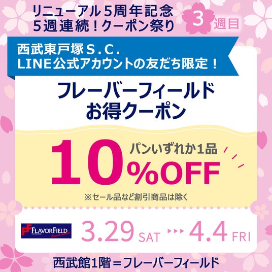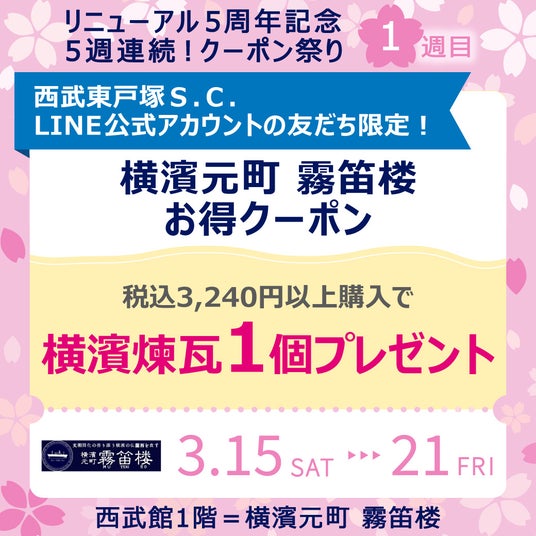 西武東戸塚S.C.LINE公式アカウントの友だち限定5週連続!クーポン祭り