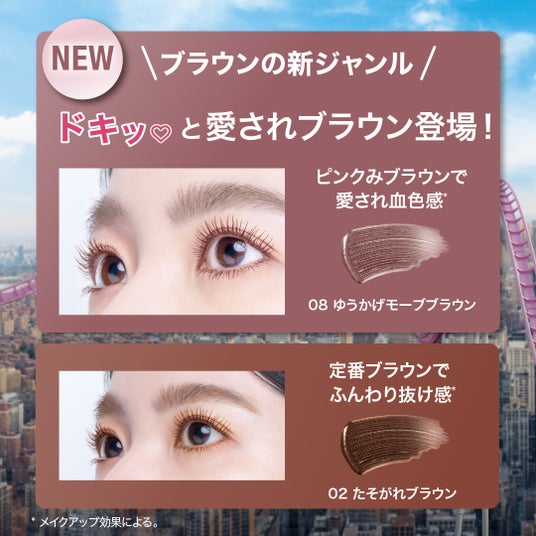 春の訪れをまつげから。ドキッと愛されブラウンで、メヂカラ急上昇*¹!視線惹きつける上向きロング*¹。
