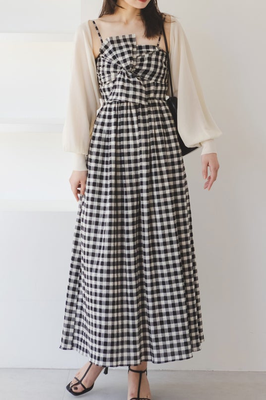 薄手のカーディガンがセットになっているので、涼しい時期からも着用できます。