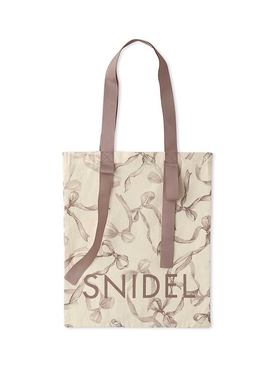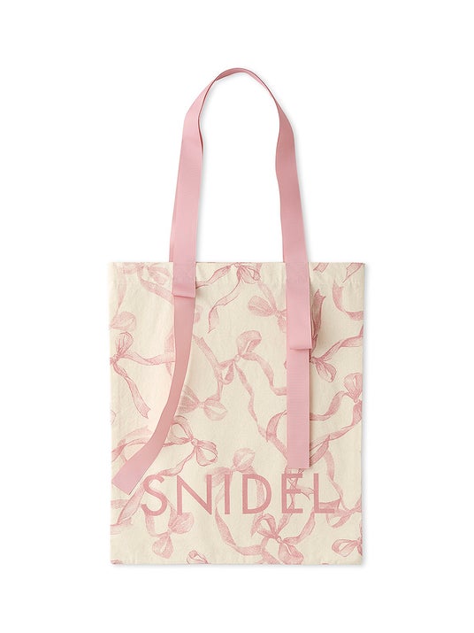 お買い上げの皆様にリニューアルオープンを記念した布帛素材の限定ショッパーをプレゼントいたします。キャッチーなリボンモチーフが施されたショッパーは、バッグとしてメインでもサブとしても使用いただけます。